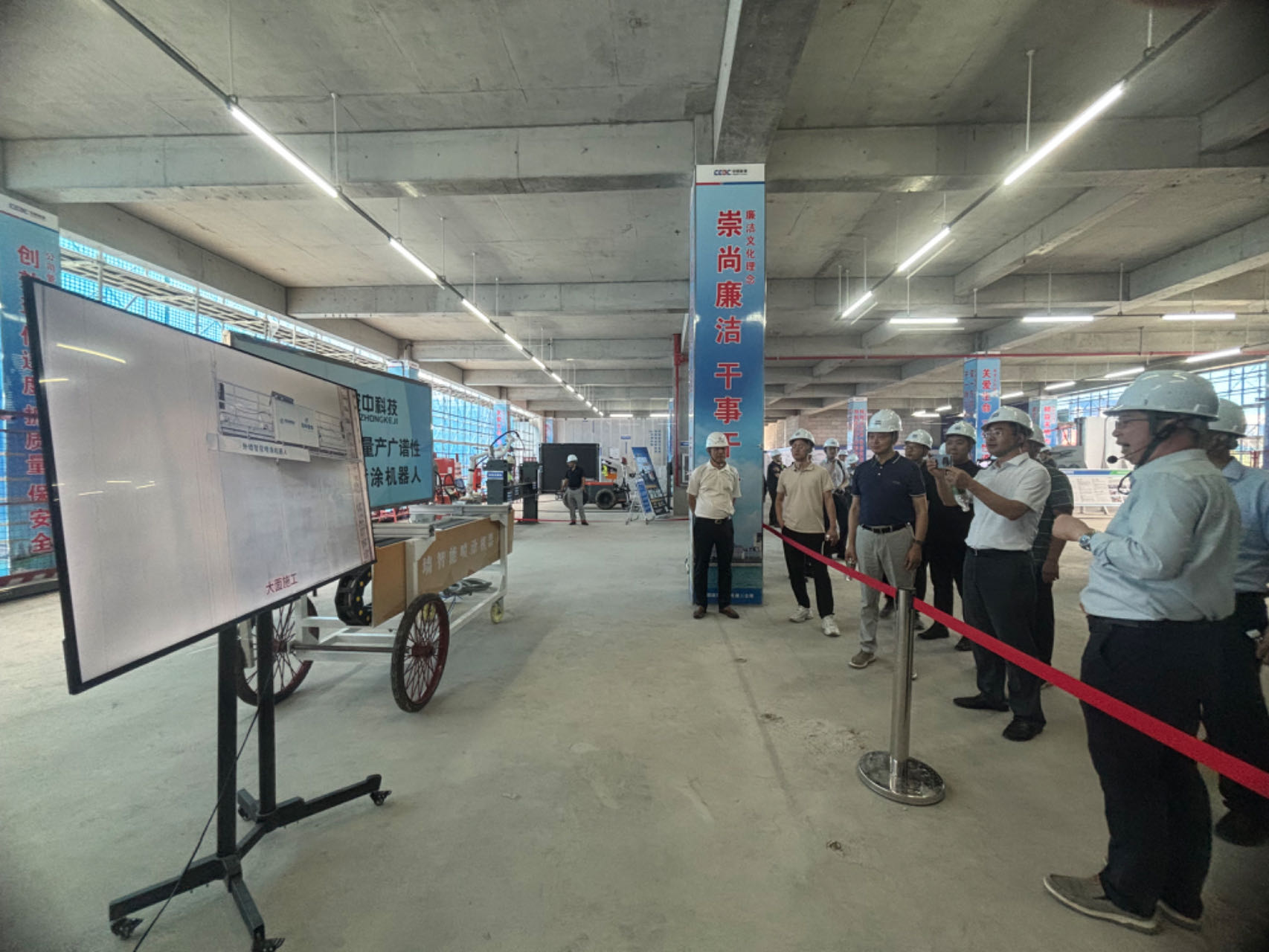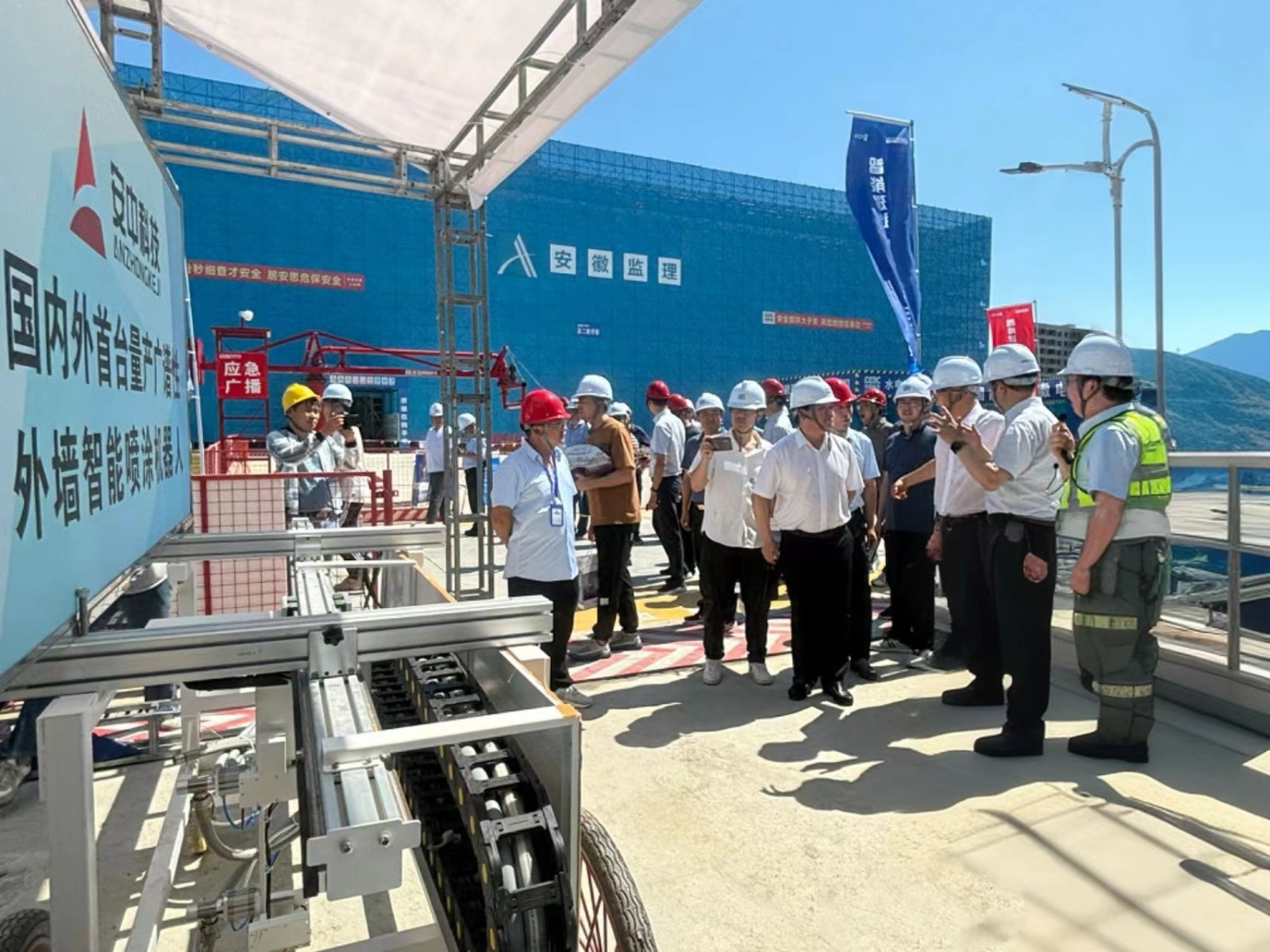 2024年7月26日我司外墙喷涂机器人,犹如一位科技巨星,璀璨亮相中国能建安徽电建二公司合肥六中新桥校区的智能建造展览。此次展览,我司机器人成为了瞩目的焦点,吸引了众多观众的目光。